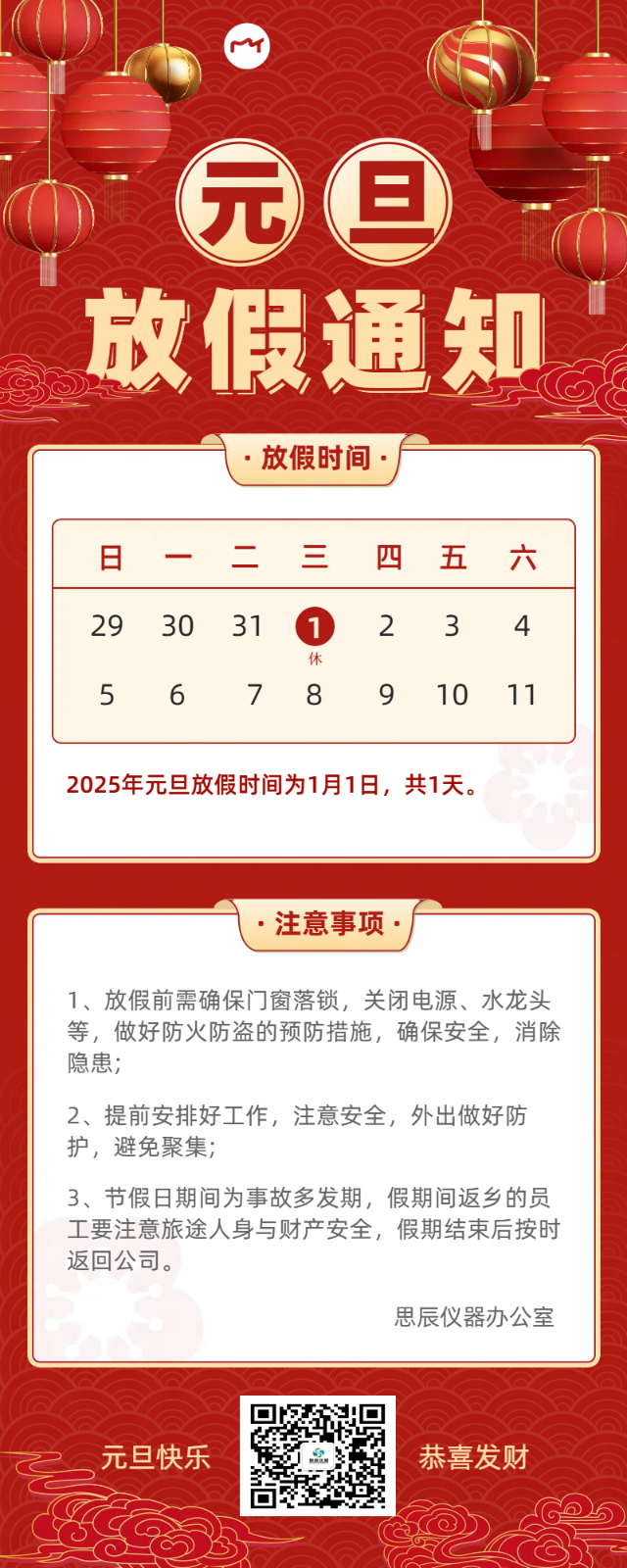 根據(jù)國務院最新通知,2025年思辰儀器元旦放假工作事宜!