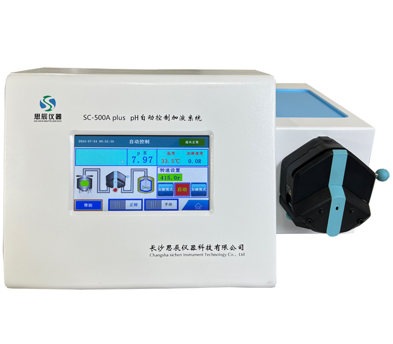 本系統(tǒng)是長沙思辰儀器研發(fā)團隊最新研制開發(fā)的第三代高精度pH自動控制系統(tǒng),為高等院校、科研院所實驗室,中外研發(fā)企業(yè)及研發(fā)生產(chǎn)等部門精心設(shè)計制造的,并且擁有完全自主的知識產(chǎn)權(quán)。獲得了國家一項發(fā)明專利【ZL201410349779.8】及多項實用新型專利【ZL201721373766.X】;【ZL 201420406067.0】;【ZL201420406055.8】。整機采用PLC控制,并與定制的蠕動泵聯(lián)機進行加酸或加堿來自動調(diào)節(jié)容器中溶液pH的預(yù)設(shè)值。是催化、制藥、化工、電鍍、生化、生物發(fā)酵、植物提取物車間,科院院所等實驗室或生產(chǎn)中小試場所理想的pH監(jiān)測自動控制系統(tǒng)。