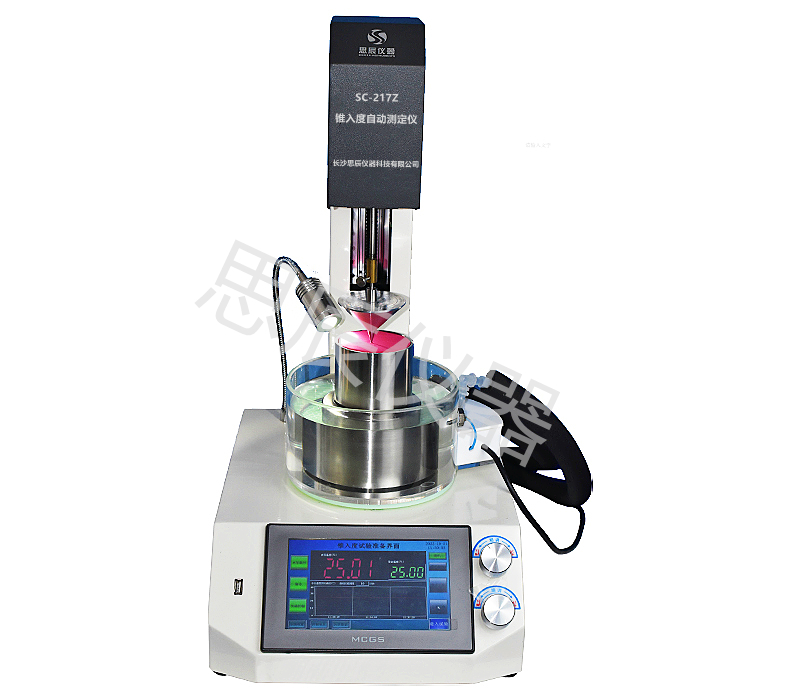 本儀器是根據(jù)中華人民共和國標(biāo)準(zhǔn) GB1790《醫(yī)藥凡士林》和《中國藥典》中關(guān)于錐入度測定法的有 關(guān)規(guī)定設(shè)計(jì)制造的。是一款集恒溫、測量、自動計(jì)算于一體的智能型高精度錐入度測定儀,自帶集成循環(huán) 一體式高低溫電子恒溫水浴,不需外接低溫循環(huán)裝置。廣泛用于測量凡士林和醫(yī)藥軟膏劑、眼膏劑及其常 用基質(zhì)材料(如凡士林、羊毛脂、蜂蠟)等半固體物質(zhì),以控制其軟硬度和黏度等性質(zhì),避免影響藥物的 涂布延展性。在設(shè)計(jì)、質(zhì)量控制、和鑒別產(chǎn)品的特性等過程中有重要作用。錐入度是衡量被測試樣稠度及 軟硬程度的指標(biāo),它是指在規(guī)定的負(fù)荷、時間和溫度條件下錐體落入試樣的深度,其單位以 0.1mm 表示。 錐入度值越大,表示被測試樣越軟,反之就越硬。廣泛適用于醫(yī)學(xué)、藥檢、電子、食品、新材料等領(lǐng)域。
