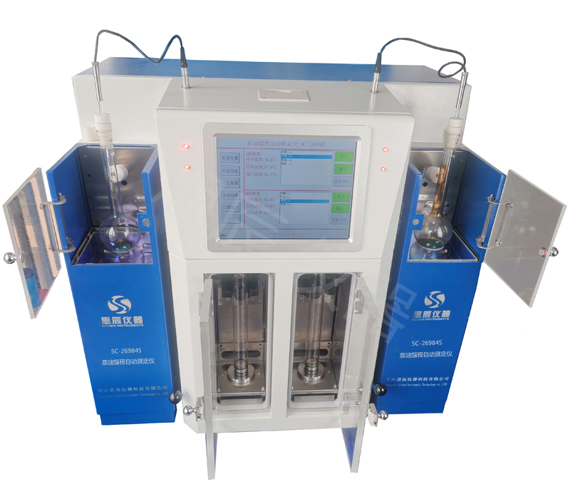 本儀器是我公司新研發(fā)的第三代產(chǎn)品,根據(jù)國家標準GB/26984-2011《原油餾程的測定》標準試驗方法設(shè)計制造的。是集機械、光學(xué)和電子技術(shù)于一體,采用進口傳感器,量筒回收體積讀數(shù)采用進口數(shù)控精密光學(xué)跟蹤檢測系統(tǒng)。自動完成餾程全過程實驗,廣泛適用于水含量質(zhì)量分數(shù)不大于0.2%的原油的測定。對于水含量質(zhì)量分數(shù)大于0.2%的原油需進行脫水處理后也適應(yīng)??赏瑫r進行兩組試樣的測試實驗,從而大大得提高了工作效率.